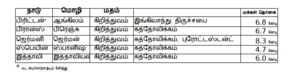 இவ்வாறு பிரிட்டன், பிரான்ஸ், ஸ்பெயின், இத்தாலி, ஜெர்மனி போன்ற பெரிய மேற்கு ஐரோப்பிய நாடுகள் ஒவ்வொன்றும் சுமார் 4 கோடி முதல் 8 கோடி வரையிலான ஒற்றை மொழி பேசும் மக்கள் தொகையையும் ஒற்றை மதப் பெரும்பான்மை அடையாளத்தையும் கொண்டுள்ளன.